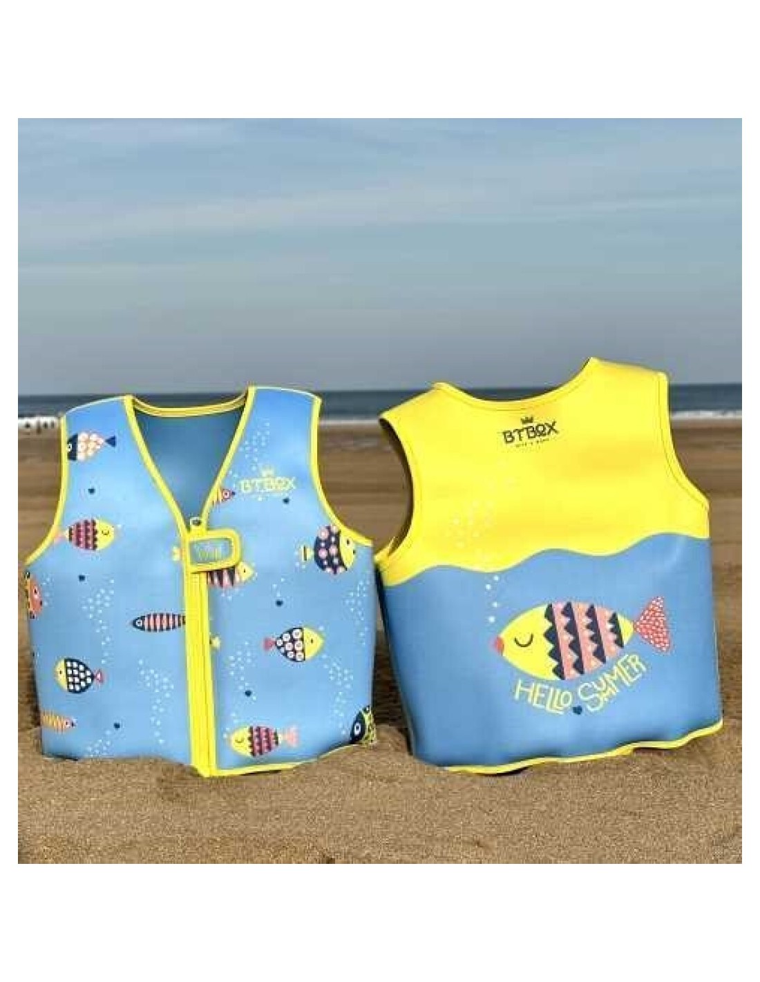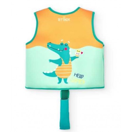 En su interior tiene 8 compartimentos y cada uno de ellos con 3 piezas que proporcionan la flotabilidad alrededor del torso y que se pueden ir quitando según el niño/a va cogiendo más confianza y soltura en el agua.