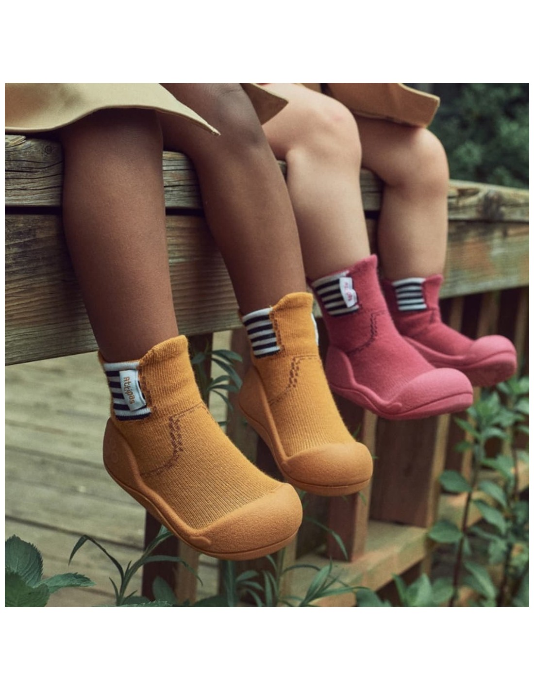 Attipas nació de la necesidad de combinar la protección y la comodidad con el desarrollo natural del pie del bebé. Desarrollados por científicos de la prestigiosa Universidad de Seúl, estos zapatos están diseñados para ser lo más parecidos a caminar descalzo. ¿El resultado? Un calzado respetuoso que protege sin interferir en la pisada, permitiendo un desarrollo óptimo del pie del bebé.