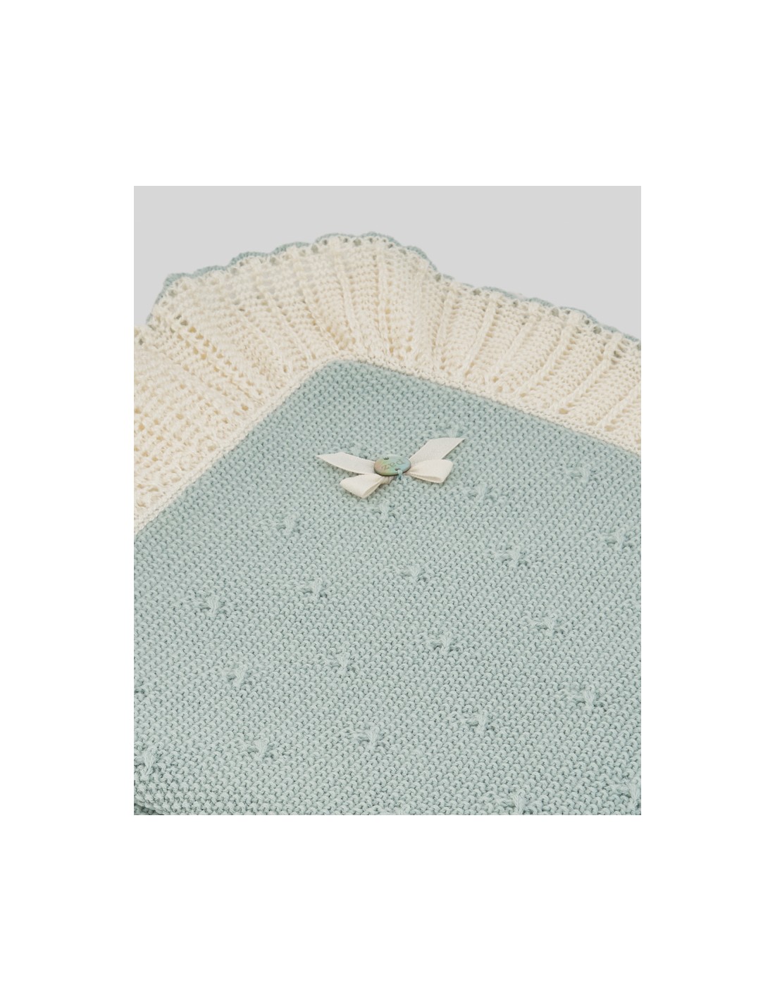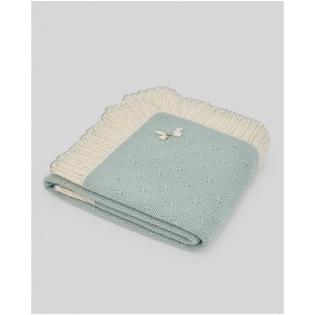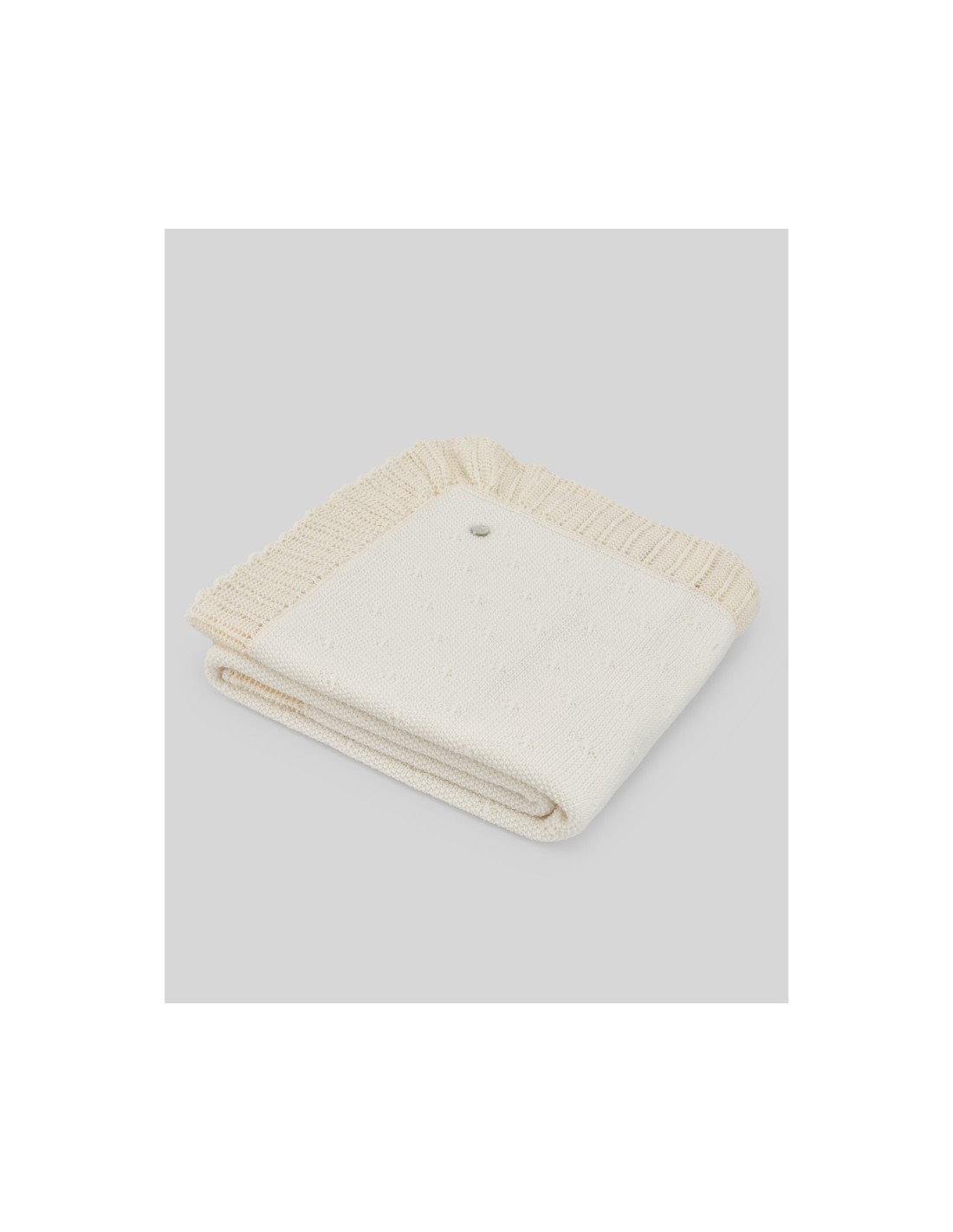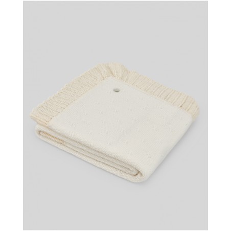 Toquilla de punto trabajado con cenefa contrastada y textura calada. Su combinación de colores y medida de 105 x 105 cm la convierten en una opción única para completar cualquier conjunto. Colección Semilla de Paz Rodríguez.