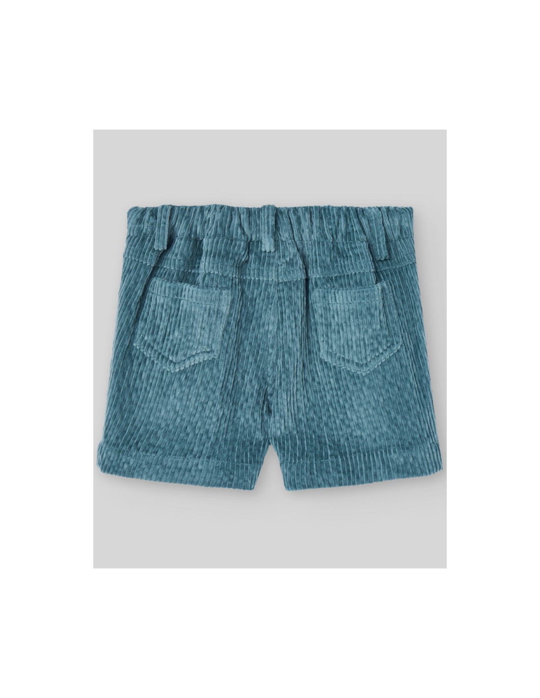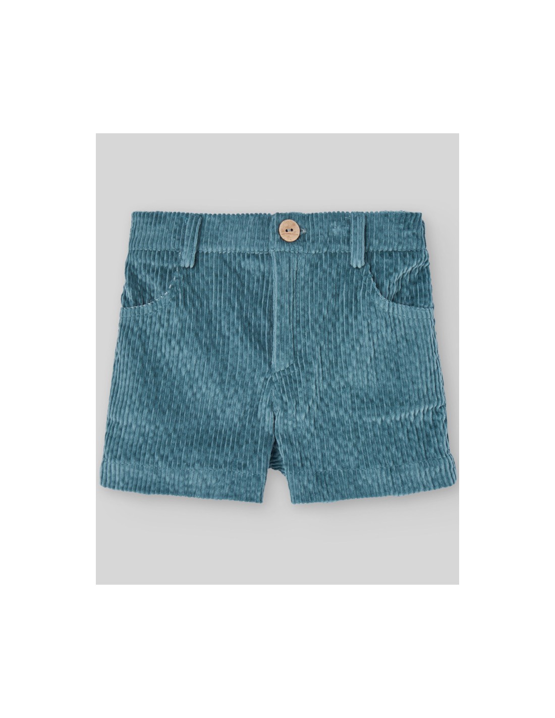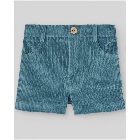 Pantalón corto de pana con goma trasera y botonadura decorativa en delantero. Estilo tradicional para la colección POMPON de Paz Rodríguez.