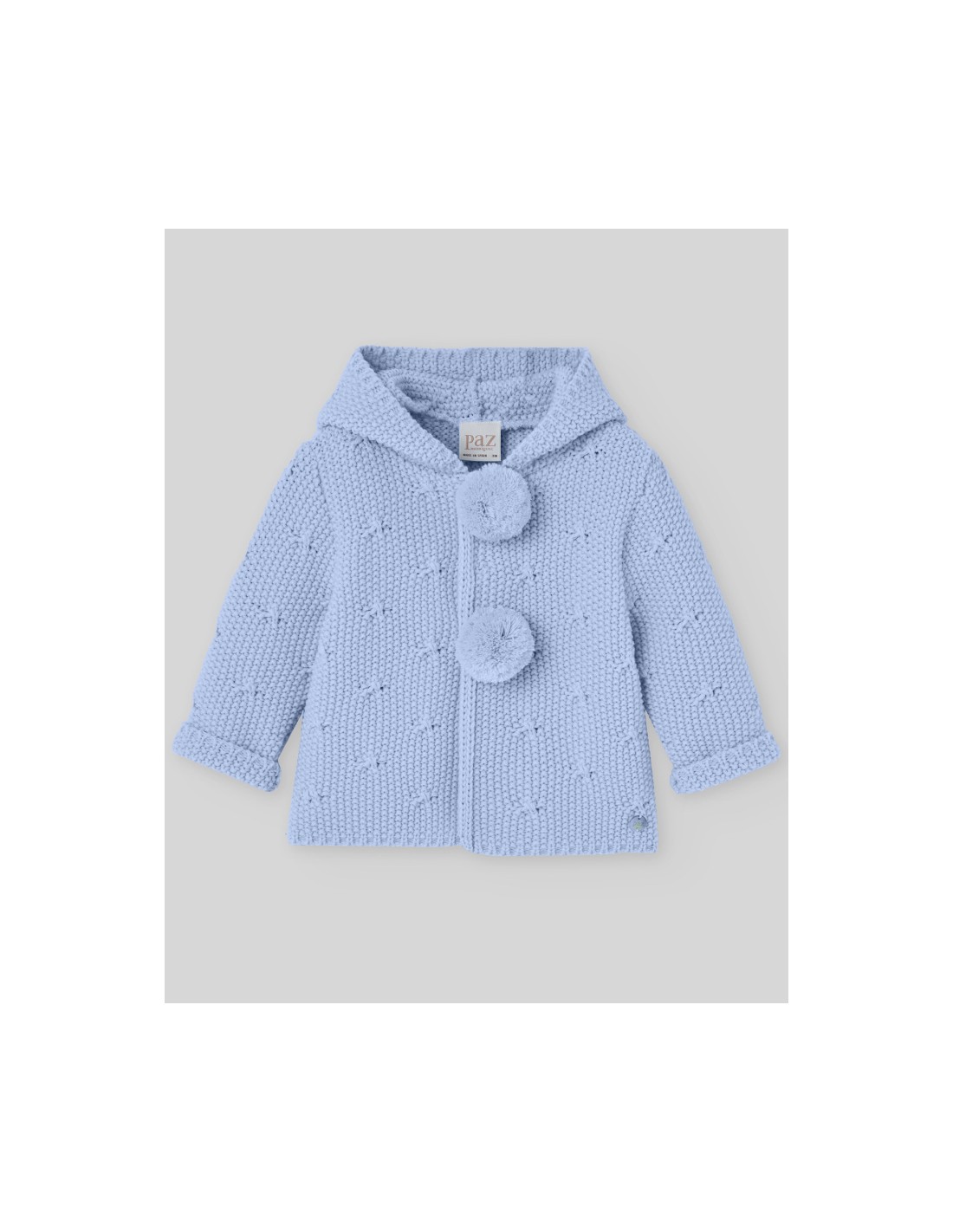CHAQUETON PUNTO CON CAPUCHA Y POMPONES SEMILLA PAZ RODRIGUEZ REF.102955